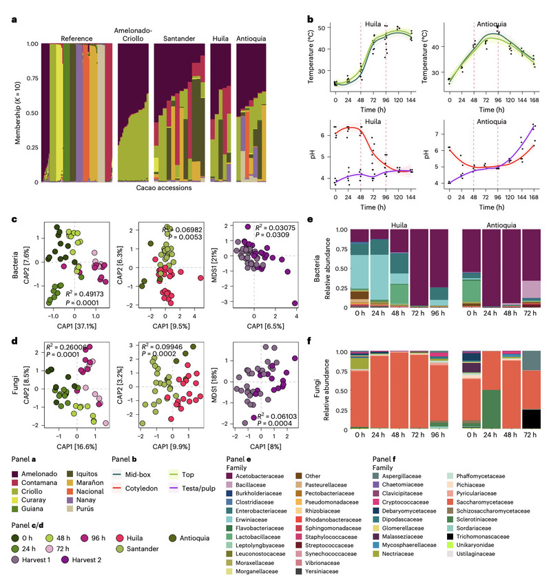 | 189 | A defined microbial community reproduces attributes of fine flavour chocolate fermentation | Gopaulchan, D., Moore, C., Ali, N., Sukha, D., Florez González, S. L., Herrera Rocha, F. E., Yang, N., Lim, M., Dew, T. P., González Barrios, A. F., Umaharan, P., Salt, D. E., & Castrillo, G. | Nature microbiology 10(9): 2130–2152 |